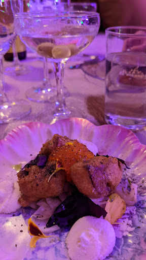A couple of infinitesimal criticisms: I think it was a miss not pairing the volcanic earthiness of the Etna Bianco with the mushroom consommé; the nebbiolo was outstanding but far less pleasurable a pairing. A few of the courses were also pushing the salt level pretty high. I adore salt and didn't mind, but I think it could be dialed back a tiny bit to let the natural beauty of the food shine through even stronger. But honestly these are miniscule complaints. The whole experience beginning to end was delicious, relaxed, and fun. Loved the shaved-hair server at the bar especially: she was knowledgeable, patient with our behavior, and had us laughing the whole night. This is a gem of...
