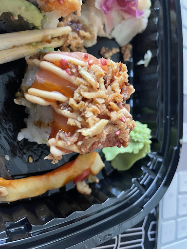 Read moreEither people know nothing about sushi or something fishy’s going on. There’s enough avocado in this sushi to feed a whole Mexican family and not much else. Oh yeah, I forgot there’s dried onion but that’s sprawled on top. It’s not like avocado is cheap, so why so much of it?! And what does it taste like? I don’t know. They use too much garnish and somehow I wonder if that’s intentional to hide the sushi’s bland taste. I don’t want to be a know it all, but they should reconsider their business and explore more with flavors rather than pretty things on top.