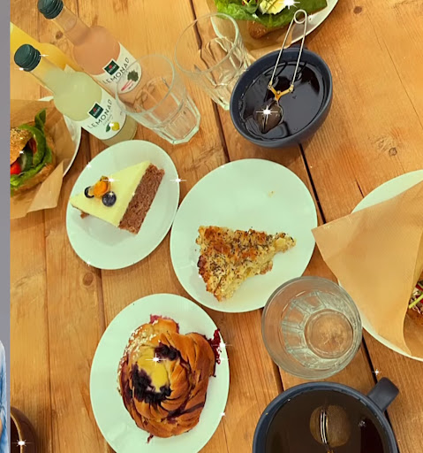 Bemötandet var otroligt fint – vänligt, personligt och med känsla för detaljer. Att slå sig ner för en fika eller något att äta här är verkligen en rofylld upplevelse. Jag åt en utsökt surdegssmörgås med salami och brie, och till efterrätt blev det en smultron- och lakritskaka – en spännande och lyckad smakkombination. Allt detta tillsammans med en kopp svart kaffe (och generöst nog en påtår som ingick).