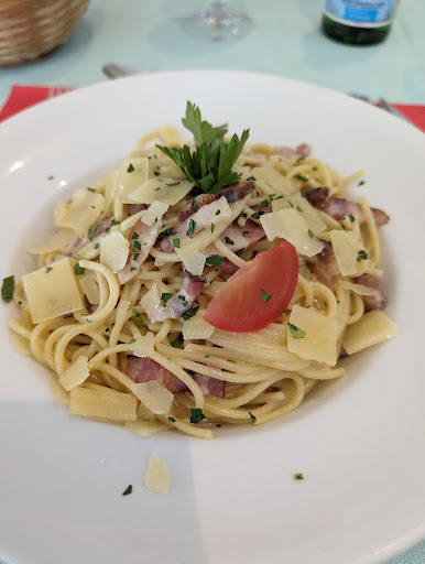 La salle de restaurant dans la véranda s'apparente davantage à une cafétéria d'EMS qu'à une vraie salle de restaurant. On entendait les mouches voler tellement les autres clients à la moyenne d'âge plutôt élevée ne pipaient pas mot. Cela met mal à l'aise d'emblée surtout lorsque l'on réserve une table avec des enfants. Néanmoins le service et la qualité de la nourriture étaient à la hauteur. Légumes frais, viande et sauce délicieuses mais frites congelées. Quel dommage ! Les pizzas et les pâtes étaient aussi bien servis. Nous avons demandé la carte des glaces qui n'est jamais arrivée donc nous avons finalement demandé l'addition sans que la serveuse ne tilte sur ce point. De toute façon l'envie nous était passée. A conseiller pour une sortie en couple ou seul et si l'on a envie de méditer pendant que l'on mange mais autrement il est préférable...