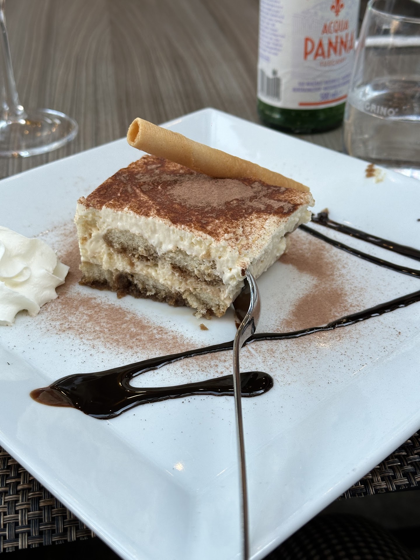 We had lunch here on Saturday, outdoors since it was sunny/hot. Outside setup was nice and peaceful. There were maybe only 10 tables. Based on the reviews this should've been a decent Italian with authentic Italian dishes - so we had high hopes. You would think that you can't go wrong with staple dishes like Spaghetti carbonara and a Margherita pizza, right? Wrong. Their carbonara was so bland. Literally 25.- for pasta with heavy cream. Even the bacon/pancetta in there could'nt give much flavor. The bigger disappointment was their pizza. This had nothing to do with an authentic Italian pizza, unfortunately. Actually they're comparable with the pizzas from the nearby delivery fastfood-chain-pizzarias. Which doesn't have to be a bad thing, but it's just not authentic Italian. The service was ok, but the ladies had a rather annoyed face on and seemed unmotivated. Maybe it was the 33C heat. Maybe because it was a rather quiet and draggy Satuday...