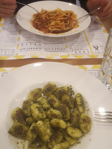 Read moreIm Herzen der Aarauer Altstadt befindet sich die Spagi by Marcello. Das Ambiente ist top, alles eher etwas dunkel gestaltet, jedoch umso gemütlicher. Wenn man im vorderen Teil sitzt kommt man sich etwas „ausgestellt“ vor. Im mittleren Teil ist es dagegen einiges gemütlicher. Für grössere Gruppen gibt es im hinteren Teil genügend Platz (auch noch mit Bühne!). Für Kinder gibt es Hochstühle und auch entsprechende Angebote auf der Karte. Die Toiletten sind sauber, sowie genügen vorhanden (auch zwei Waschbecken). Das Personal ist freundlich, jedoch nicht immer aufmerksam. Die Karte ist übersichtlich gestaltet, auch viele vegetarische Angebote – hier werden bestimmt alle fündig! Preislich völlig in Ordnung für Aarau. Wir bestellten Buffalo Chicken Wings, einen Salat sowie Spaghetti Carbonara (XL), Chicken Curry Salat sowie einen Bella Italia Pasta Salat. Den Hauseistee sowie die Hauslimonade sind zu empfehlen, diese schmecken einfach lecker! Als Dessert genossen wir Zitronen-, Schokoladen-Eis sowie ein Dessert noch mit Cookies drin – sehr empfehlenswert! Es ist zu empfehlen unbedingt beim Reibkäse genaustens hinzuschauen, da es leider immer wieder vorkommt, dass dieser schimmelt (dies war ebenfalls bereits der Fall als die Spagi noch einen anderen Besitzer hatte). Am Wochenende empfiehlt es sich zu reservieren, unter der Woche findet man meistens einen Platz. Dauer von Bestellung bis das Essen kommt ist gerade richtig. Auch lädt die Lokalität dazu ein, auch nur etwas zu trinken (hier eher im vorderen Teil des...