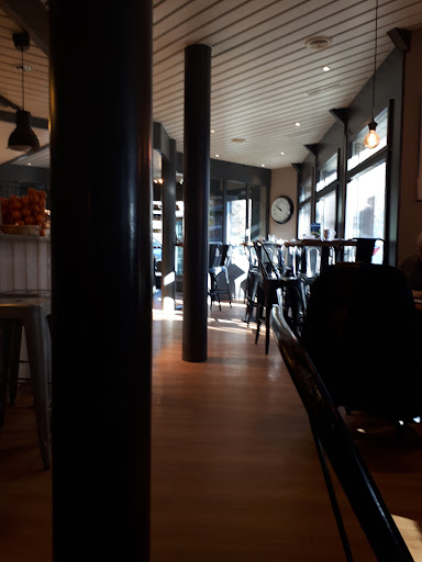 Vers 14h, pas grande affluence. Une attente env 8min ( pas un soucis quand tout se passe bien) pour une demande depuis devant le bar env. 3,50m, oui vous voulez? Un espresso et un taillé svp. Réponse: oui mais le taillé faut aller le cherché là-bas. Là-bas = pas la coop ou Migros mais le comptoir boulangerie où la il y avait quelques personnes. Vous n’êtes pas un bistrot, j’attendais mieux……