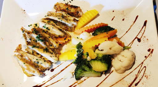Read moreNice evening in the covered back patio. Was a little hot initially but the covered area also meant it remained pleasant later in the night. Friendly service, accommodating of dietary restrictions. Grilled salmon was well cooked, pizza was a hit and salmon tartar...