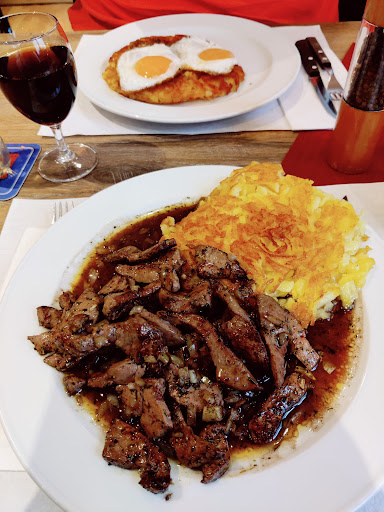 Abendessen zu zweit am 12.07.2024, ab 18:00 Uhr Abends. Erster Eindruck: Gemütlicher Gastholf ohne jegliche Deko und sonstigem Schnickschnack. Tische ohne Tischdecke. Stühle und Holzbänke ohne Polsterung. Der Eingang führt durch den kleinen überdachten Aussenbereich (Gartenrestauration). Lage: Ruhig, 2 Gehminuten vom Dorfplatz von Allschwil. Auffällig: Schon bei durchschnittlicher Belegung ist es zuweilen sehr laut. Muss man mögen. Bestellte Speisen: Die 2 grünen Salate als Vorspeise sind lieblos angerichtet aber köstlich. Zur Hauptspeise: 1 mit Kräuterbutter überbackenes Kalbsfilet (medium) mit Pommes Frites und 1 Schweins Cordon Bleu mit Pommes Alumettes. Was für gigantische Portionen! LEider kamen beide Hauptgerichte zeitlich verzögert (3 Minuten) auf den Tisch. Das Kalbsfilet war nicht medium sondern noch bleu. Reklamation wurde anstandslos entgegengenommen und Filet nachgebraten. Dass es auch noch danach nicht wirklich medium war, ist dem Fleisch geschuldet. Die Kräuterbutter (eher Café de Paris) ist hausgemacht und äusserst lecker! Das Cordon Bleu hat gemundet ebenso wie die Pommes Alumettes. Weinempfehlung des Hauses: Ungeniessbar pelzig und auf der Zunge brennend. Zum Glück hatten wir zum Test nur 1 dl Glas bestellt. Wir entschieden uns dann doch für eine 0.5 l Flasche Merlot. Dieser Wein war fein und passte, kam aber leider viel zu spät, als wir beinahe schon mit dem Essen fertig waren. Zur Nachspeise konsumierten wir noch einige Espressi und eine Meringe mit Schlagrahm (ohne Glace) wie auch ein Zitronensorbet mit Wodka. Auch hier: Welch grosse Portionen! Leider waren die Meringueschalen trocken. Fazit: Trotz teils sehr lautem Ambiente ist das Preis/Leistungsverhältnis unschlagbar, wie der Kassenbon für all unsere Konsumationen (Total CHF 150) belegt. Wer einen grossen Hunger mitbringt, der...