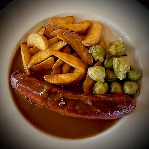 Read moreEssen würde ich eine 5 von 10, Braten war sehr einfach aber auf den Punkt gegart. Kartoffeln zu trocken die Zwiebeln waren fertig Zwiebeln für HodDogs und die Sauce war extrem wässrig. Die Kombination an sich sehr gut aber etwas lahsch umgesetzt. Ein Minus Punkt war beim Kaffee die knapp zwei Monate abgelofene Schokolade. Personal (Eine Person), sehr freundlich, sehr schnell und immer nachgefragt.