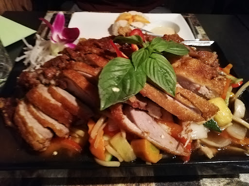 Read moreDer Service war gut, immer da wenn wir etwas brauchten, aber nicht aufdringlich. Das Essen war außergewöhnlich. Als Vorspeise hatten wir die Frühlingsrollen, sie waren phänomenal frisch im Geschmack und knusprig mit einer leckeren süß-sauren Sauce. Als Hauptgericht hatte meine Freundin den gebratenen Reis mit Huhn, der sehr lecker und frisch war, keine Soße, aber trotzdem schön saftig. Ich hatte die gebratene Ente mit Gemüse und Reis, die sensationell war, knusprig aber nicht trocken, das Gemüse war frisch und die Soße war einfach außergewöhnlich. Bevor wir gingen, warfen wir noch einen Blick in den Weinkeller, der ein echter Hingucker ist, einfach wunderschön. Wir tranken ein Glas Single Malt mit dem Besitzer, der sehr nett und freundlich war und uns viel über die Geschichte des Ortes und die verschiedenen Weine, Whiskeys, Rums und andere Getränke, die sie im Keller haben, erzählte. Die Atmosphäre ist etwas anderes, nicht das, was man von einem thailändischen Restaurant erwarten würde, eher traditionell schweizerisch, aber sehr nett und gemütlich.