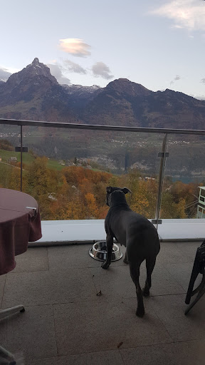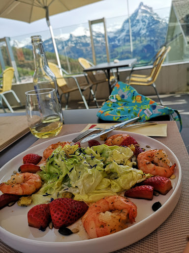 Lovely views from terrace!! Bill came to 90 chf for 3 folks- drinks, food and ice cream. Top level service and very fair price for a lovely...
