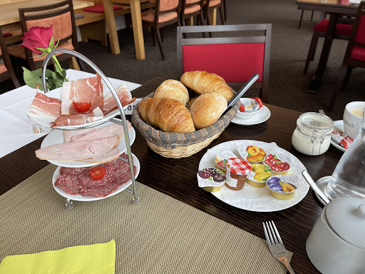 Service was well above Swiss standards. Completely different kind of welcome compared to the restaurant across the street. Here they brought a water dish for the dog. Would've brought a high chair for baby if he was bigger. Super friendly with big smiles. And even gave us moms roses on the way out!