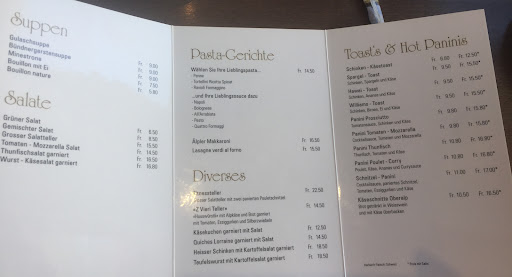 Read moreThe food selection is limited. You're limited to paninis, soup, salad, and pasta. But the quality of the food is great! We ordered the regular salad and spinach tortellini with pesto sauce. Both dishes were delicious. Expensive, but what can you do, you're at the Alps. If you can sit by the window then your experience will be even better. The view is quite amazing, and the cafe only about a ten minute walk from the train station. BRING CASH! This place is cash only.