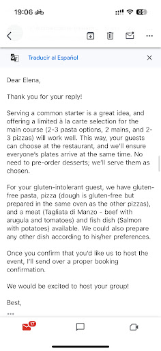 Note: I’m attaching a screenshot where they confirmed that the pre-arranged menu would be fine. It’s particularly frustrating because they are now trying to shift the blame, claiming they had informed us that a full à la carte dinner wouldn’t be possible for a group of 35. This is inaccurate, as the options were pre-arranged and approved by...