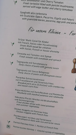 Read moreI would like to share first the good things about the restaurant. It's super children friendly, there is a nice playground. Also the meals are excellent. I was there twice. Yesterday, everything went well. However, today I ordered a meal of the day, I was asked if I wanted soup or salad, so I thought it was included in the price (25 CHF written on board). However on receipt it was 30 CHF for the meal and 12,5 CHF for the salad. I think this was not properly communicated to me and it completely changed my impression about...