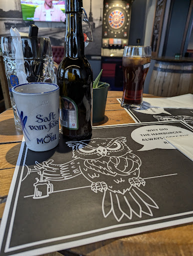 PERFECT for BRITS and AMERICANS! We had been traveling for a long time by the time we reached Andermatt, and were looking for food and an atmosphere that felt a bit more familiar. Pinte was the perfect spot for us (Americans) as it is styled after a British pub! We had two burgers and a basket of fried stuff (chicken nuggets, onion rings, fries) for about 75 Swiss Francs (about $75 - yikes!), but it was well worth it for the morale boost it gave us. The staff was friendly and helpful, and they were playing some very nostalgic and wonderful tunes from the 90s that had us bobbing our heads as we ate and chatted about our day. I would ABSOLUTELY recommend Pinte for any English-speakers who are hungry for a little taste of home. You can only eat so much pizza and schnitzel, after all! Thanks for taking such good care of us, Pinte! We hope to...