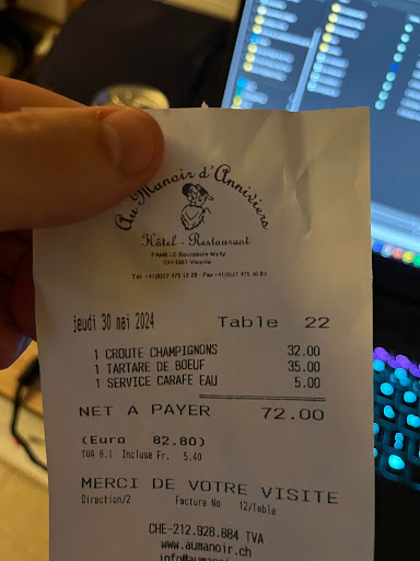 Read moreI've been skiing in St Luc in the Val d'Anniviers for the past 10 years, my partner for many years longer than me. We've been staying at Au Manoir on and off, alternating with another hotel in St Luc, and I've never been disappointed. After a break of a couple of years, we stayed there last weekend, and I'd forgotten how charming Vissoie is: a true gem. ||||Our room was small but lovely, chalet-styled, with a balcony overlooking the village. We stayed as part of a special deal: 2 nights half board was CHF190 each, so very good value. The 3-course dinners were excellent, better than I remember -- the homemade desserts were a highlight. Breakfast was a little skimpier than I remember, and definitely not on a par with other breakfast buffets in German-speaking Switzerland, but adequate. The homemade jams were very good.||||The hotel is ideally placed for skiing, as just across the road is the hub for the area's Post buses. It's only 15 minutes or so up the hill to the skifields from there.||||We'll...
