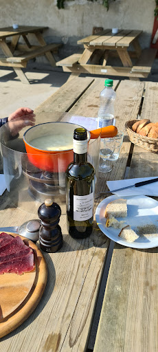 Petite buvette et restaurant très sympathique. Service rapide. Difficile de réserver à l'avance. Il vaut mieux s'y rendre très tôt pour avoir une place. Plat de charcuterie, fondue ou croûte au fromage, de la petite restauration ou un repas copieux selon son envie. Cependant les prix restent assez chers et une fondue pour 3 personnes avec une assiette de charcuterie partagée avec du vin par exemple dépassera très largement les 100 francs. Impossible de manger à l'intérieur si l'on a pas réservé à l'avance. Tables en terrasse très agréables lorsqu'il y a du soleil, sinon il faut être bien habillé lorsque le ciel est couvert en hiver il peut faire...