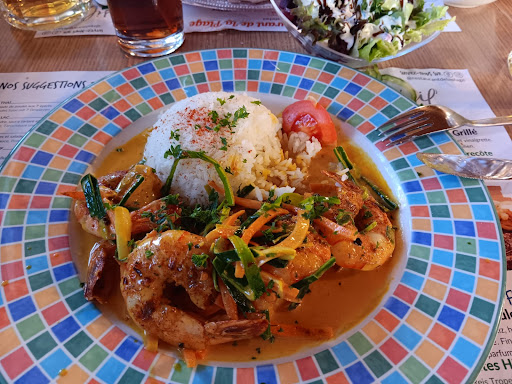 Das Restaurant an sich hat eine wirklich hĂŒbsche Terrasse mit angenehmer Belichtung, jedoch war diese vollkommen besetzt und wir mussten drinnen essen. Die orangen VorhĂ€nge und die tĂŒrkise Wand biss sich etwas in den Augen, allerdings ist das Geschmackssache. Die Luft war etwas muffig aber dann wurden die Fenster geöffnet.
