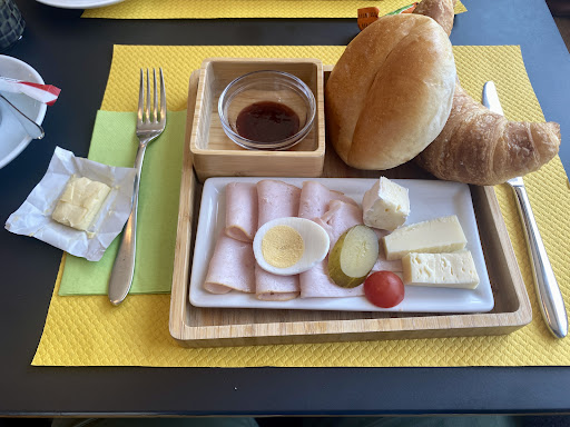Essen: Wir hatten das Bäcker-zMorge und dies kann ich sehr empfehlen. Wir konnten sogar „nur“ Putenfleisch bestellen. Das Müesli gabs im Karton aufgetischt (durch Dame), da hätten wir uns eine Schale erhofft, waren ja im Restaurant (siehe Bilder).