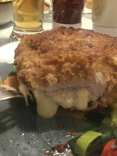Zum Hauptgang habe ich das Secredo vom Schwein mit Gemüse und Pommes bestellt. Das Fleisch war extrem trocken und die Pommes waren versalzen. Das Gemüse hat im Fett gebadet. Der Preis von 36.- ist auch hier meilenweit von der Qualität entfernt. Mein Partner hatte sich das Cordon Bleu Brüggli bestellt. Das Cordon Bleu war auch trocken und auch hier für 37.- qualitativ nicht ausreichend. (Zu wenig Käse und trockenes Fleisch). Insgesamt haben wir mit einem Eistee und einem Cola ohne Dessert 101.- bezahlt für diesen Preis haben wir schon wirklich besser und mehr gegessen. Das Gesamtbild wäre okay bei einem angepassteren Preis aber bei diesen Preisen erwarten wir auch das es qualitativ und Servicetechnisch passt.
