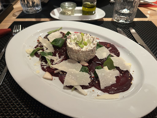 Das Restaurant überzeugt mit einer gelungenen Mischung aus rustikalem Charme und moderner Eleganz. Sichtbares Holz, dezente Farben und stilvolle Details schaffen eine warme, einladende Atmosphäre – perfekt für einen entspannten Abend mit Freunden oder zu zweit.