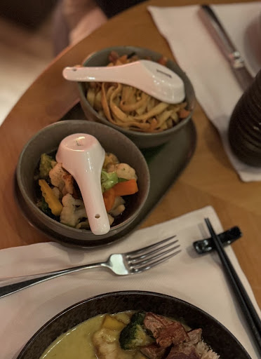 We went to this restaurant for the first time, also due to their range of Gluten Free options. Food is Asian(Thai) but it’s very far from authentic. Nothing was spicy. We paid 510fr for 4 guests. Service was unprofessional and here are the details: 1) the lady server didn’t know the names of the meals on the menu, she was leaning into our menus trying to read description of dishes to write down. 2) we waited very long time for our main dish, it arrived after server already notified us twice that it was coming. 3) we ordered second bottle of water that was never delivered nor served, 4) server messed up orders. But all that was not the reason of my 1 star review. The same server noted that we had a person who has celiac disease and cannot eat gluten AT ALL (this was also noted when the reservation was made). When she brought food and served side dish to the celiac guest, we immediately noticed that those were gluten noodles and called them for assistance, as celiac guest had eaten some already. The extremely ignorant and rude way of speaking to guests is shocking to see in a place like this. First thing: male server/host laughed and tried convincing us that we made a mistake eating the side dish. Second, they denied that it was gluten in the start and then when they realized they can’t cover it up they tried to convince us that gluten side dish was for the guest on the left to celiac guest, but that guest ORDERED RICE!!!! The only guest that had ordered gluten noodles was on completely other side of the table and would not even be able to reach that dish as it was served, and the guest that ordered noodles got his serving already!!!