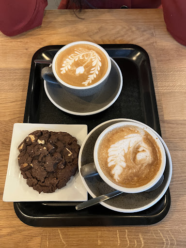 What a delightful establishment! My partner and I were traveling through the area and decided to stop in for a coffee after receiving some very helpful information from a waitress (I regret not getting her name). We chose an iced latte premium and an iced dirty chai, and they were both excellent. I am quite particular about my coffee and sometimes find myself questioning the judgment of others who rate cafes as five stars when the coffee is subpar, but this establishment is certainly deserving of its high rating. I only wish there was one in...