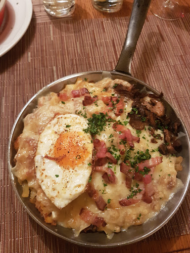 Typical Swiss village bistro atmosphere. The Caquelon Babel (meat fondue) was excellent. The quality of the meat and the deliciousness of the broth was a perfect combination. The meat was so tender, I barely had to cook it. The escargots were also delicious and the meringue creme double for dessert was the perfect finishing touch to a great evening. Highly recommended and worth the drive out...