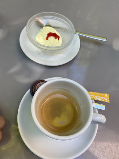 Read moreRead moreGrosse Terrasse mit viel defekte Glühbirnen und mit sicht an der wand sehr ungemütlich und nicht sauber ,chaotisch und was sicher nicht geht def.Glüh.wechseln wehn noch gasten am Tisch sitzen. Essen !,4× Wurst Käse dekoriert Salat mit pommes ( kein schönes dekorierten salate und kleine Portion und de pommes war zuwenig auf Teller komt denn aber noch separat auf eine Teller. Majo verlangt auch bekommen, die tube war fast leer 4pers?fragt man nach mehr majo bekomt mann eine kleine Schale aber 5min später spaziert der Kellner mit eine neue Tube zu andere Tisch. Mein Mann war noch am essen und die Ketchup, Salz Pfeffer nimm den Kellner einfach weg ohne zufragen ob mein Mann noch etwas braucht. Wir waren noch nicht solange fertig mit essen und dessertkarte wird einfach auf dem Tisch gemacht ohne zufragen ob wir noch ein Wünsch haben . Dessert !, coupe Dänemark mit sehr sparsame chocoladesause noch nachgefragt aber war auch sehr sparsam gewesen. Coupe Hawaii auf de Karte mit berensausce war nichts von der sauce...