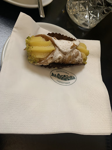 The restaurant is very quaint and cozy, with a terrace outside that's almost completely surrounded by green bushes, hiding it from the crowded street. Staff was very friendly, although the service was a bit slow, since there was only one girl there. The cornetto with Nutella was delicious, and the panini was good, but nothing spectacular. The Americano coffee wasn't that great either, but the...