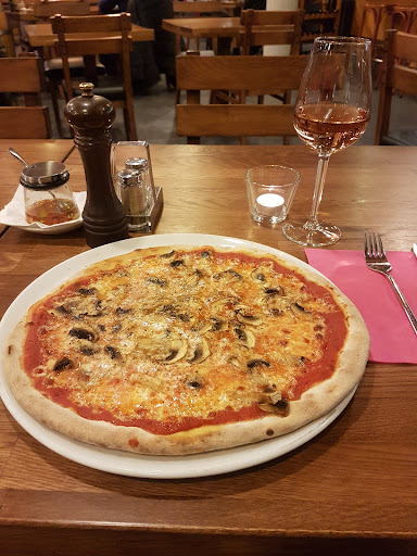 The pizza arrived in good time and it was very tasty. Pizza Fungi. There was chilli oil on the table so I added some to the pizza. The rose wine complimented the pizza nicely. I didn't have dessert, but a gentleman across from me had ice cream which...