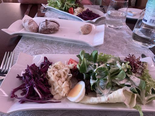 We had a salad and venison. Latter was so dry my stomach cramped up, while former looked like a messed-up version of the supermarket salad buffet (in a very cheap supermarket). The sides of my venison were equally dreadful, dry, and most definitely not homemade. Not even a school cantine can mess up food this badly.