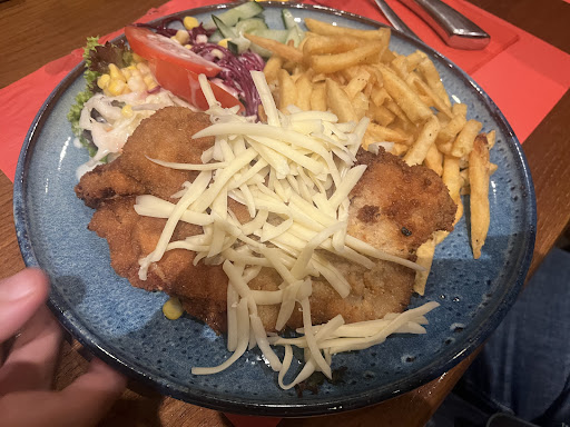 I always come to this place and have never been disappointed. The service is amazing, and it’s a cozy restaurant that serves fantastic meat. My favorite dish is the ribs, which are perfectly cooked. I’ve also tried the cordon bleu and schnitzel, both of which were excellent. The fries are a great complement to the meal. During sunny days, you can enjoy your time outside, making it a lovely spot to relax. The service is quite fast, and overall, it offers good...