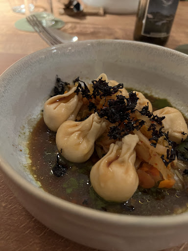 The waiters are very friendly and corteous. The Salat as a starter is fresh due to the Kapuzinerkresse. unfortunately the main dish happened to be a starter as well "(°u°)/" The dumpling with Kimchi were a little bland. The butternut with goat cream cheese and Thyme foam dipped with black garlic dips has been sensationel. Also the Cappuccino I can strongly recommend, great roasted beans, nor sour nor bitter but strong in coffee taste. Athough the dishes are quite small and can vary much in taste, all together a 4 * is still too little, because I weight the effort to use mostly local grown and fabricated products (as the soya sauce is produced in Rheinfelden).