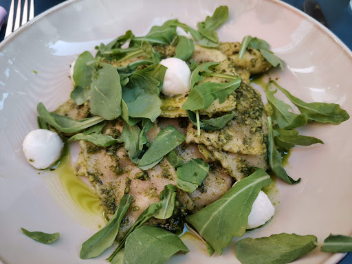 Read moreDie Innenräume sind sehr geschmackvoll und gekonnt gestaltet. Der Garten steht leider im krassen Gegensatz dazu. Die Möbel sind ausgeblichen, Farbe blättert mitten auf dem Tisch ab, die Bepflanzung(abgesehen von ein paar schönen, grossen Hortensien) ist mehr Unkraut als alles andere und auf dem Boden lässt man das Unkraut auch spriessen. Das Essen war ok und die Portionen eher klein. Für die Preise hätten wir aber doch mehr erwartet also nur ok. Ehrlich gesagt glaube ich, mein Pesto zu den Ravioli war zu lange püriert, denn es war sehr bitter, zusammen mit dem Rucola dann viel zu bitter. Für 28 Franken hätte ich auch statt billigen, gummigen Mini Mozzarella Kugeln vielleicht eher leckeren zerupften Büffel Mozzarella erwartet. Das andere Hauptgericht war lecker, aber im Verhältnis zum Preis winzig. Krönung des Ganzen war, dass ich anfangs in meinem Glas erst eine grosse ertrunkene Ameise fand und kurz darauf nochmals eine. Ich nehme an, die Minze war nicht richtig gewaschen. Das Personal war übrigens sehr freundlich und nett. Alles in Allem muss ich mich einer anderen Rezension anschliessen. Das Konzept ist nicht schlüssig, man will entweder zuviel oder verspricht dem Gast zuviel. Wir werden wohl nicht...