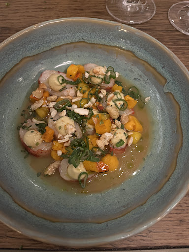 Elegant and sophisticated restaurant of the Movenpick hotel. The service is attentive and fast, with kind and smiling waiters. We visited the restaurant for dinner and tried some dishes a la carte (they offer a tasting menu from 120 chf per person, but we were more intrigued by individual dishes). As started we tried Lobster Tiradito and Tuna ceviche, both greatly composed, super tasty and worth the visit to the restaurant. As main dish we tried the scallops served in a tom kha gai soup and the lomo saltado, perfect cooking time for both, and every part of the dish was nicely balanced. Their signature cocktail pisco sour was a great match for our dinner, but we knew this already as we often go to Movenpick cocktail bar. Dulcis in fundo, their dessert Jivara chocolate with salted butter caramel and Kombawa mousse were simply amazing. I highly...
