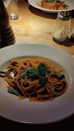 Но больше всего разочаровало отсутствие сардин. В меню заявлено, что в блюде есть сардины. Возможно их взбили в блендере и добавили в соус. Я дошла до дна тарелки, но так и не нашла протеиновую часть блюда. Одни углеводы. Эту пасту можно было приготовить лучше. Возможно, у повара было тяжёлое утро.