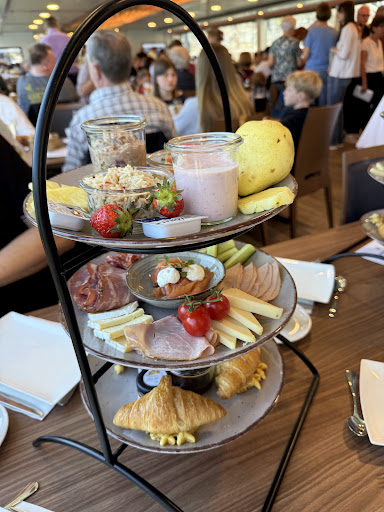 Read moreWe had the Captain's Dinner on the new ship Rhystärn. It was planned to be the Christoph Merian, but like half an hour before start the machine had a defect, and they had to move all the stuff to the other ship. Still, rhey managed to give us a super nice evening, with a delicious, well presented dinner. The ship is beautiful, and the view from the river as well, even though the weather did not play along so much. The staff is super friendly, and we really had a great time. The only negative point is that if you want to be safe to be able to pay, bring along cash. We tried to pay the tickets with Reka card, and the machine did not accept it, and later for the drinks the credit card also was not working, because they have very bad reception at Dreiländereck. Though to be fair they offered us to send...