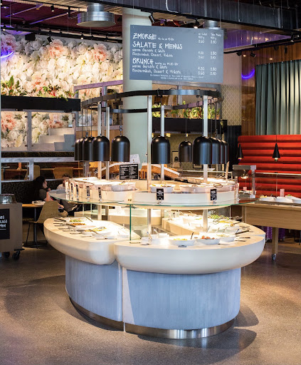 BUT didnât take into consideration that freshly cooked main dishes would be cold and less appetizing by the time they were placed on a cold plate, carried around while looking for salads and maybe desserts, waiting in line to weigh and pay and finally returning to a table which was reserved by placing a coat or other personal items on it, and all for a similar price of eating in a âtable-servedâ restaurant where the food is served at least warm. The interior is entertaining but confusing in style but that is probably planned to inspire one to âeat and leaveâ and not âwine and dineâ. â*â From...