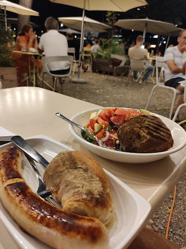 It's crazy how underrated this place is - some people would rather go to city restaurants and pay twice as much when they can have an amazing salad/pizza/sausage here at a decent price overlooking the river and watching local artists juggle with fire or play songs in the guitar or dance salsa. The atmosphere is amazing in the evening and I had the feta salad and the beef sausage and they both were very good! The sausage was huge and the feta salad was healthy and came with toasted wholewheat roll! The deposit for the plates and the cutlery is a little bit annoying but apart from that this place is amazing and I highly recommend it to anyone visiting Basel and looking for a good place to spend their...