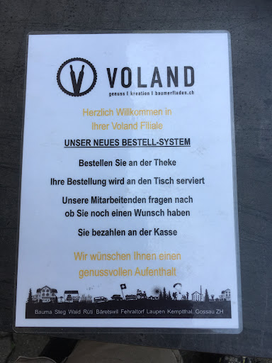 Read moreWegen dem Baumerfladen sind wir wir heute nach Bauma angereist. Im pittoresken LadengeschĂ€ft wurden wir von einer ĂŒberaus freundlichen, gepflegten und kompetenten Mitarbeiterin bedient, welche ein besonderes Lob verdient (hervorragende Kundenorientierung, Sonntagseinsatz und Identifikation mit ihrer Arbeit). Die obligaten Baumerfladen in den verschiedenen Grössen sowie ein schön eingepacktes Birebrot haben wir selbstverstĂ€ndlich eingekauft. Der Baumerfladen war bei der anschliessenden Verköstigung exzellent. Was uns aber völlig zu begeistern vermochte, war die ausgezeichnete ZwetschgenwĂ€he, welche wir im Anschluss erworben haben. Oh ja, und da waren wir völlig erschlagen ob dieser GĂŒte. Andersrum ausgedrĂŒckt: Eine gute ZwetschgenwĂ€he ist in den meisten FĂ€llen gut und lecker. Eine von Voland setzt jedoch sĂ€mtliche MassstĂ€be neu auf. Ein super-grosses Kompliment an die BĂ€ckerei Voland und an das gesamte Voland-Team - es ist so schön, dass es Euch gibt. Eines ist sicher: Wir kommen mehr als gerne nochmals wieder. NatĂŒrlich so schnell...