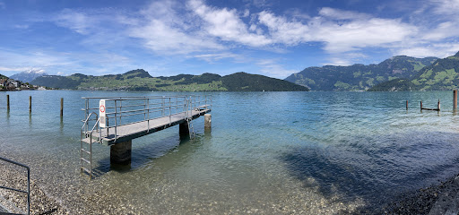 Read moreEin kleines, aber grossartiges und grosszügiges Strandbad, weil der Eintritt frei, einige Parkplätze vorhanden und ein wunderbarer Seezugang vorhanden ist. Die Wiese ist sehr gut gepflegt, die Anlage sehr sauber, es gibt Möglichkeiten zum Umziehen und Toiletten. Das Restaurant hat ein gutes Angebot und das Personal ist sehr freundlich. Fazit: Eine überaus sympathischer Ort. Herzlichen Dank, dass wir den Ort wiederholt...