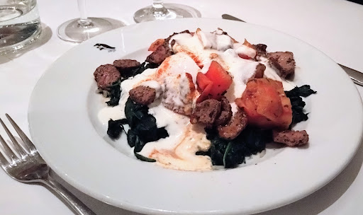 When studying the menu, I already had my fingers over the "cynical criticism" keyboard... Who can make a menu like this once across the world and then it's supposed to be fresh and authentically cooked? I thought I'd make it difficult right away and ordered the Poussin. Must be dry and boring (sorry, I was on a test trip)... But far from it, it was worth the wait. I've rarely had such a juicy bird on my plate, with crispy fried skin and a dream of a sauce. My partner was also very happy with her trip to the Balkans (Etli İspanak)... the other girl with the moules l'indienne was ok, but next time she said she would opt for a more traditional Moules with white wine instead of curry. I'll definitely be back...made me want to try more. And you can enjoy it here too, with attentive,...