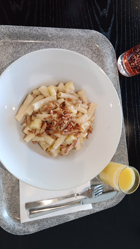 Read moreRestaurant mit 3 Tages-Menues und eines davon ein Vegi Menü. Kommt mit seiner Größe an die Kapazitätsgrenzen. Tw. recht lange Wartezeiten bei der Ausgabe und an Selbstbefiebubgs-Buffet, hoher Geräuschpegel und zwischen 11:30 und 13:30 sehr wenig...