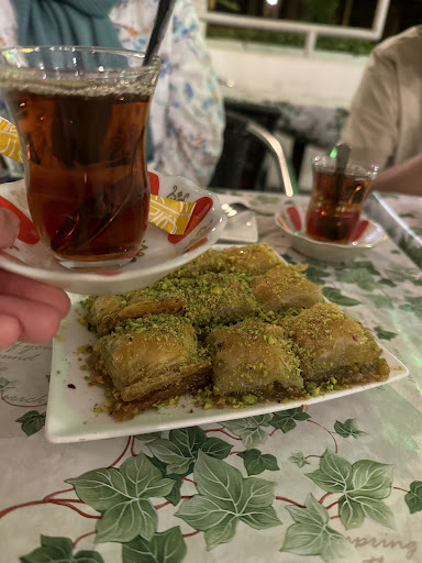 Zum Essen: Die Künefe und der Tee haben echt gut geschmeckt.