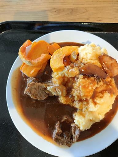 Leider hat in der letzten Zeit das Angebot des Buffets und der Tages MenĂŒs sehr an QualitĂ€t und QuantitĂ€t nachgelassen . Das Angebot der Mittags MenĂŒs wird immer einfallsloser . Was auch seit lĂ€ngerem ein Trend zu sein scheint , das die Preise immer gleich zu sein scheinen , tendenziell jedoch immer kleinere Portionen und eine kleinere StĂŒckzahl an Fleisch StĂŒcken (Nuggets , BĂ€lle , FlĂŒgeli ) auf dem Teller befinden . Es werden nur Fleisch Waren auf den Grill gelegt die auch bestellt werden . Dadurch entstehen Wartezeiten von 10 - bis 15 Minuten . Was ein mancher dazu bewegt sich ein KuchenstĂŒck am Buffet auszuwĂ€hlen . Zum aufwĂ€rmen bietet sich der Ofen an - was auch wiederum bis zu 15 min. Warten einfordert . Als schnellere Alternative steht den GĂ€sten eine Mikrowelle zur VerfĂŒgung . Diese jedoch dermassen Schmutzig ist , das man sich 2 Mal ĂŒberlegt , ob man seine Mahlzeit dort zum aufwĂ€rmen hineinstellen möchte . Die Antwort des Personals : Es sei Niemand dazu veranlasst Jene zu reinigen und es stĂŒnden Saubere Hauben bereit um die Speisen damit abzudecken . Soo schlimm sei es damit dann auch nicht mehr ... Der Speisesaal wirkt im allgemeinen schmutzig und unaufgerĂ€umt . Wenn etwas auf den Boden fĂ€llt wird es einfach aufgehoben und zu den Sauberen Sachen eingerĂ€umt . Das Wischwasser sieht schwarz/grau und unappetitlich aus . Es werden damit jeweils die OberflĂ€chen der Tische und StĂŒhle kurz durch gewischt . Unter den Tischen liegen Speisereste und gebrauchte Papier Servietten , hie und da werden auch un abgerĂ€umte Tablare mit dem Essgeschirr , auf den lĂ€ngst verlassenen Tischen , elegant ĂŒbersehen .