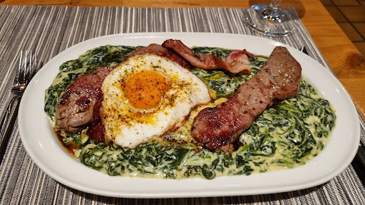 Rindsteak war sehr fein hausgemachte Sauce Maiscroquettes sollte man unbedingt probieren Tolle Beilagen zum Fleisch gute Portion (man wird satt) Top Service, sehr unterhaltend