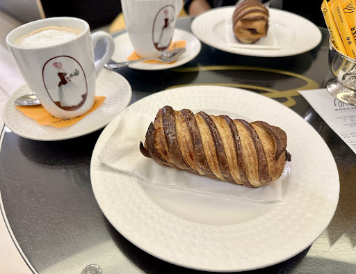 So wird das Pain au Chocolat auf der Monnier Internetseite beschrieben und genau so ist es und dafür 5 Sterne. Wir übernachteten nebenan im NH The Bristol, wo uns das Frühstück zu teuer war und stiessen dann sofort auf das Monnier. Schon nur wegen diesem einzigartigen Pain au Chocolat lohnt es sich diese Patisserie zu besuchen. Der Milchkaffee war aber auch lecker 😉