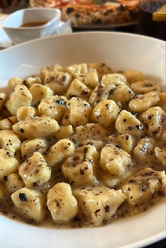 The starter tomato soup was delicious and home made. For our entrees we had the Veggie spaghetti, which was vey good but couldn’t hold a candle to the Gnocchi with black truffle which was fantastic. My mouth did a happy dance with each bite.
