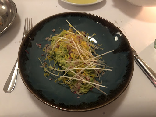 Found this place on a whim heading back to Geneva, and would come back just for this restaurant. We got salad of fresh green leaves for starters. I got the Casarecce Pasta (green and white asparagus, peas pecorino, black pepper) although I could have sworn it had garlic in it, and my coworker got the beef tartare. Would go back for just the beef tartare because it had spice to it, a tomato base/paste of some sort, and plenty of pickled flavors. I love alliums and flavorful food, so these dishes hit the spot for me, and, coming from a diverse dining scene in Los Angeles, I gravitated towards the restaurantâs...