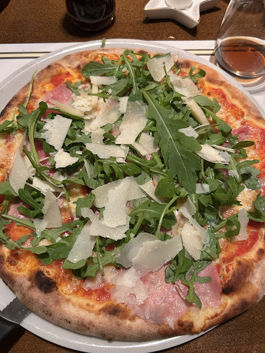 Read moreLa déco, le style, l'ambiance générale est bonne.. malheureusement ça ne fait pas tout.. premièrement, on s'est assis et personne ne nous a demandé le certificat COVID, alors que c'est obligatoire. Et les employés portent tous leurs masques sous le nez. La serveuse sympa, mais avec des ongles de sorcière. Ça peut être joli une french manucure, mais quand ça touche ta pizza, non merci.. de plus, elle ne connaissait pas la carte. Elle est revenue trois fois demander si on avait bien commandé ce plat. Bon, service de midi, un peu de Stress, ça arrive. Quand à la nourriture, pizza au feu de bois bonne, mais sans plus. Très standard comme qualité. Enfin, bon, faudrait que j'aille manger là -bas un soir, voir si c'est meilleur quand ils...