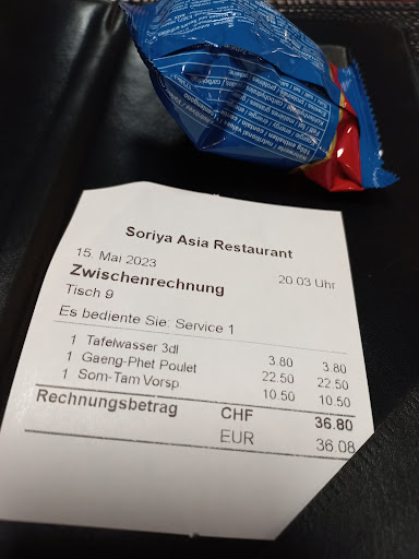 Read moreVery bad experience from the staff. I was traveling with family and a five year old child . My first day in Bern and it was heavily snowing. We decided to take lunch from Soriya as they serve Asian food. The attitude of the staff was very hostile . The incident really triggered me when we asked for a glass to drink water which we bought from outside . The response was “we can’t give glass as you have bought water from outside the shop”. Even we told that we have bought water in flask for child who needs something hot. On the face she said no. We never faced such a behavior from anywhere in Swiss. Also the food seems not...